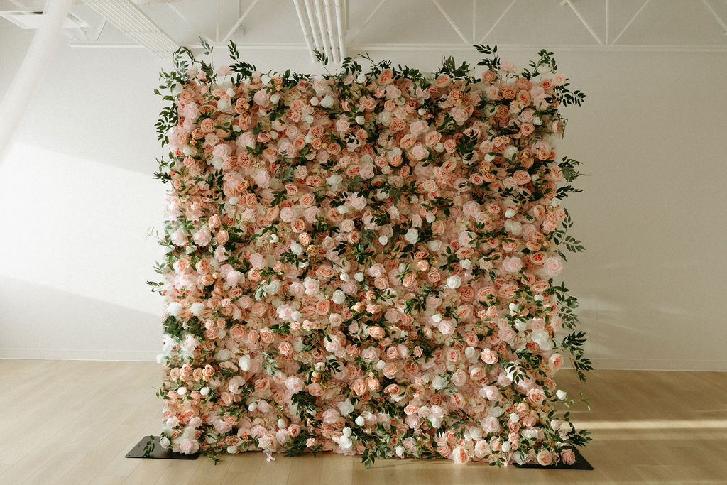 Soft, dreamy, and endlessly romantic — our Ava Flower Wall features a lush blend of ivory and blush pink roses with fresh greenery woven throughout. Designed to add a delicate, elegant glow to any celebration, this backdrop captures timeless beauty in every petal.